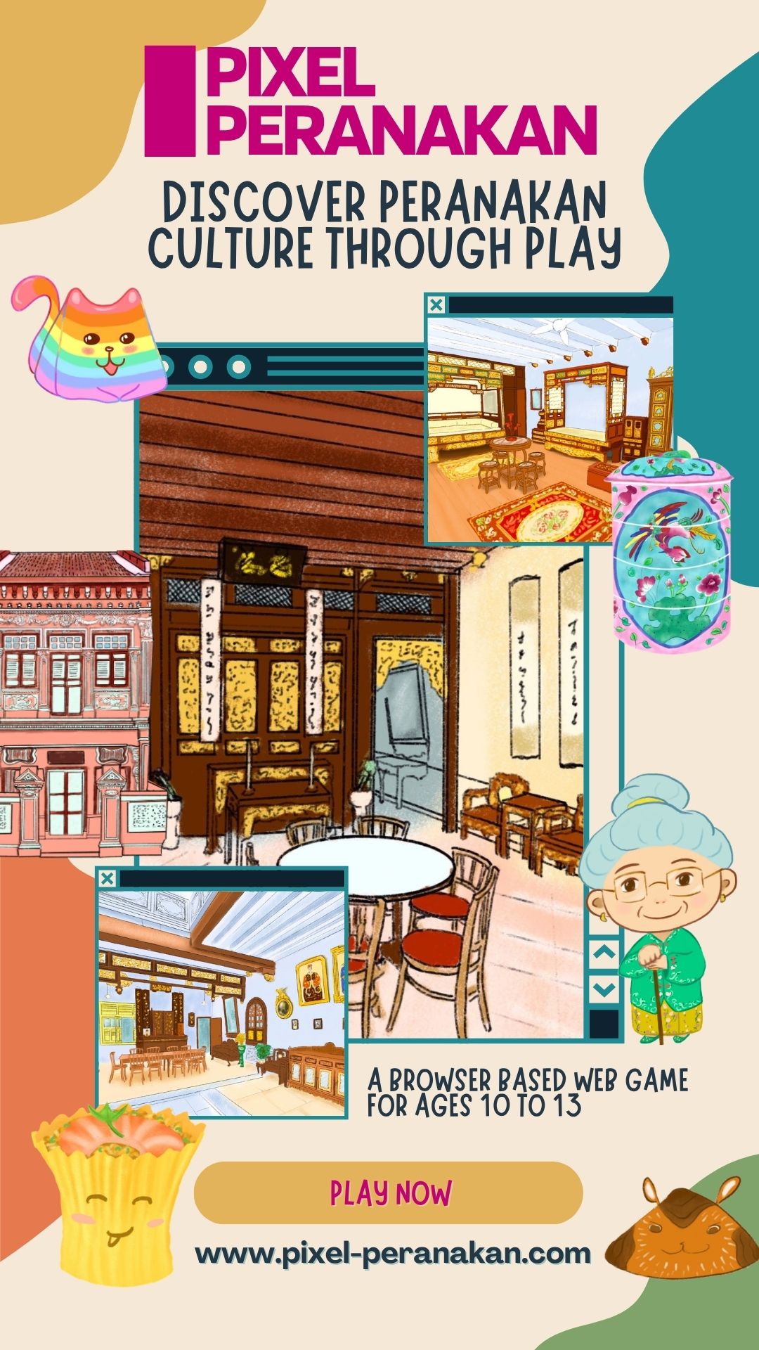 Pixel Peranakan is a web‑based adventure for ages 10–13 (and curious adults!).